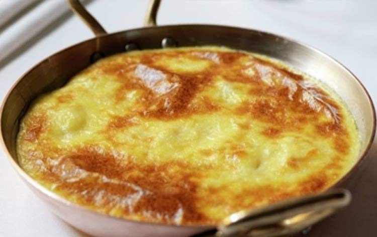 Flat omelette served in a dish, normally using smoked haddock but this time using crab meat. Its got Gruyere cheese served with a hollandaise sauce over the top, grattinated under the grill